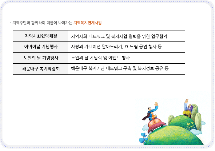 < Àå»ê³ëÀκ¹Áö°ü < »ç¾÷¾È³» < Áö¿ªº¹Áö ¿¬°è»ç¾÷